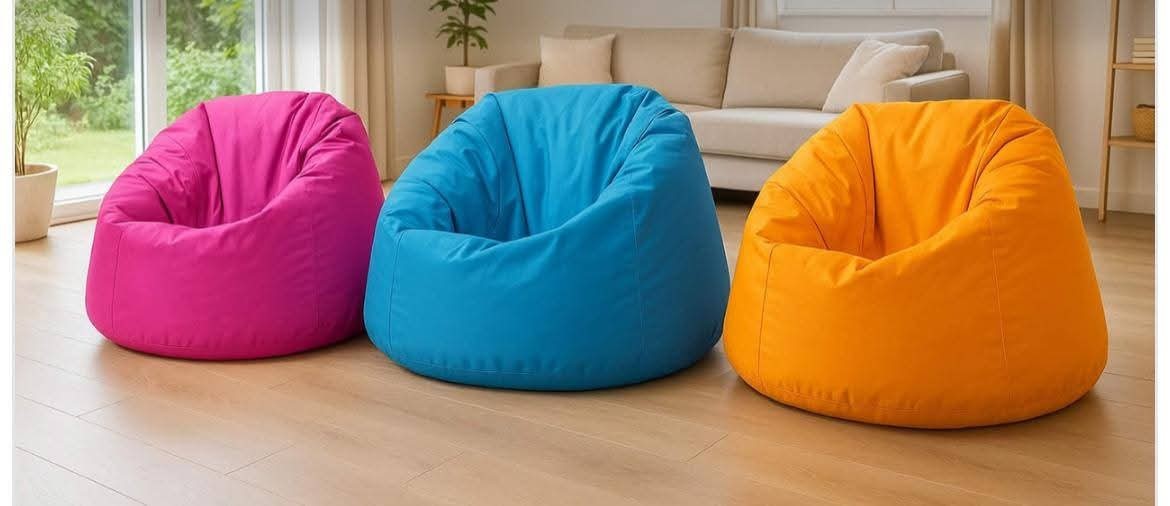 طقم كراسي بين باج لاونج بألوان زاهية (فوشيا، أزرق، برتقالي) يضيف لمسة حيوية للغرفة ومثالي لغرف المعيشة، غرف الأطفال أو ركن الجيمينج.