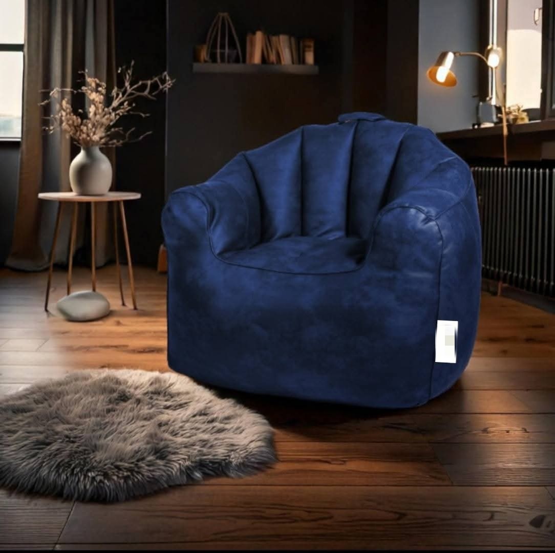 Modern Beige Faux Leather Bean Bag Lounge Chair