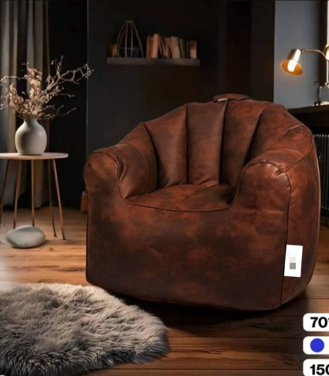 تصميم يشبه الفوتيه مع مساند ذراع مريحة وحشوة حبوب مرنة تتشكل مع الجسم لتوفير دعم مريح للظهر والكتفين أثناء الاسترخاء أو مشاهدة التلفزيون