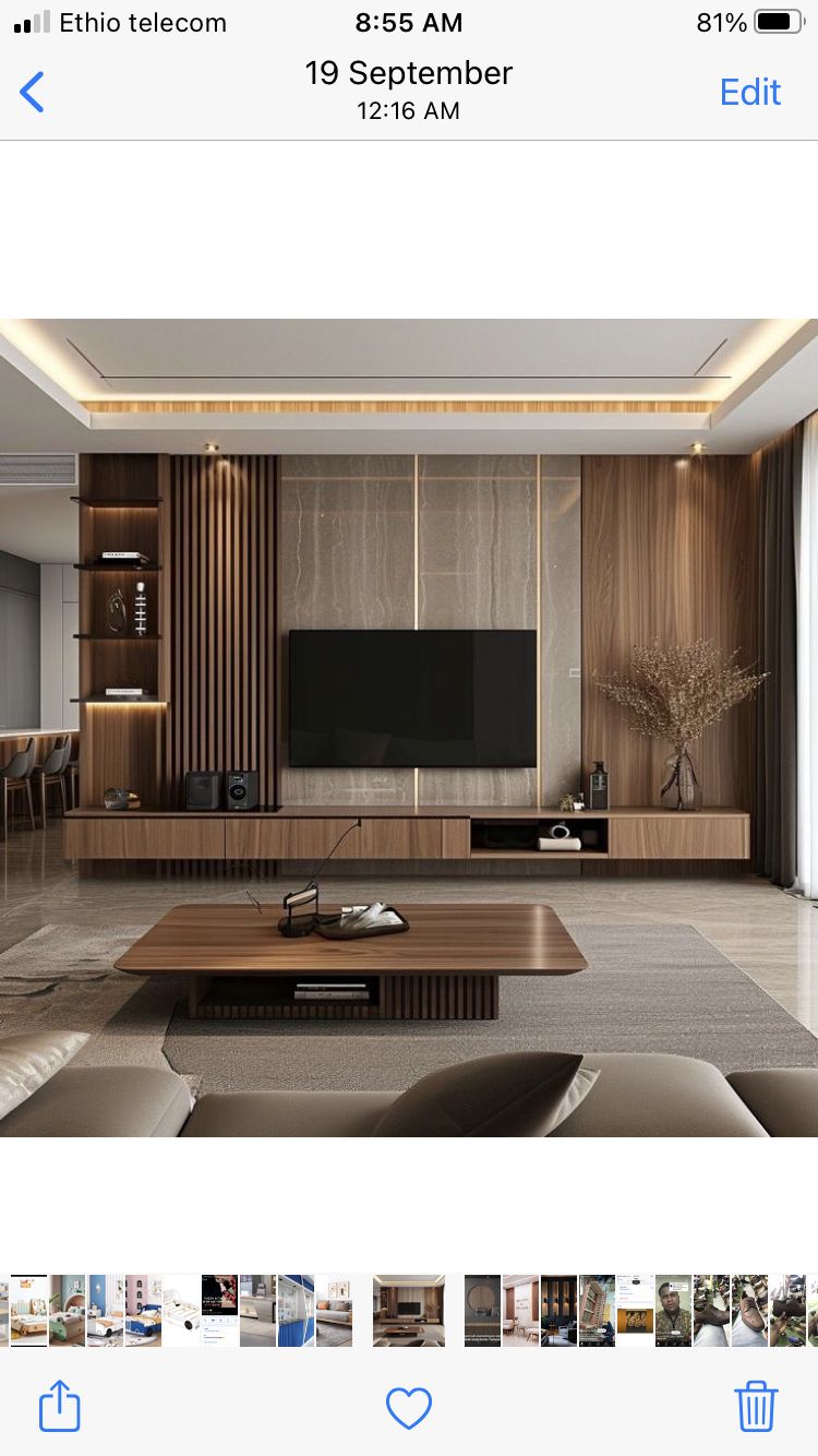 وحدة تلفزيون خشبية عصرية بتصميم فاخر تجمع بين الألواح الخشبية الدافئة والخلفية الرخامية الراقية. تتميز بإضاءة LED خفية ورفوف عرض أنيقة تضيف لمسة فخامة للمساحة، بالإضافة إلى وحدات تخزين عائمة تمنح الغرفة مظهراً منظماً وحديثاً. خيار مثالي لغرف المعيشة التي تبحث عن الأناقة والعملية في آن واحد.